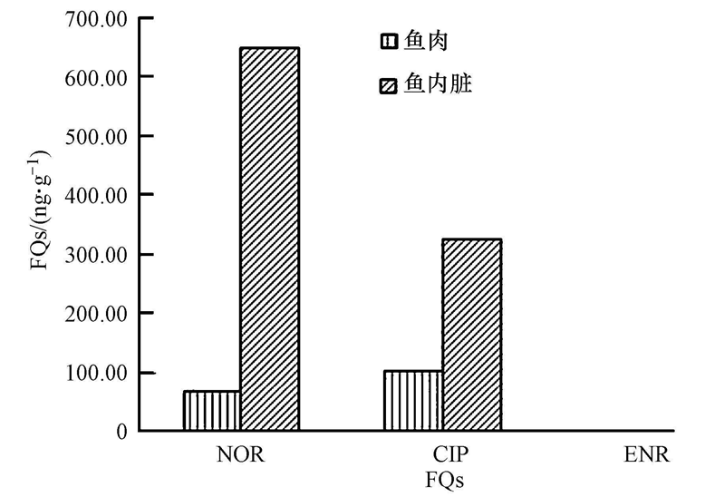 圖4 鳊魚魚肉和內(nèi)臟中FQs的濃度 |