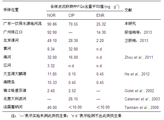表3國(guó)內(nèi)外河流沉積物中FQs含量比較