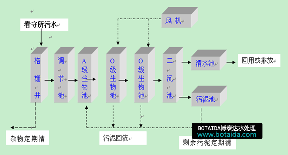 我國看守所大部分遠離城市,建設于郊區(qū),無市政管網(wǎng)建設,所以,在生產生活中產生的污水必須自行建設凈化設施,達到國家環(huán)境保護標準后才能排放或重新利用。否則必將污染周邊生態(tài)環(huán)境。