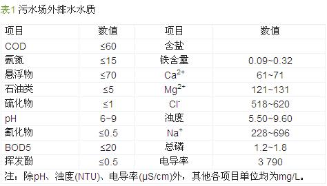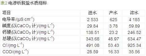 電滲析脫鹽裝置進水為污水場外排水,在污水場正常運轉(zhuǎn)時,其外排水水質(zhì)如表1。