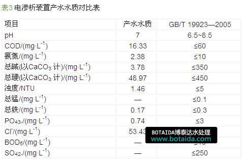 將電滲析裝置產(chǎn)水與《城市污水再生利用/工業(yè)用水水質(zhì)》(GB/T 19923—2005)中要求的標(biāo)準(zhǔn)進行對比,結(jié)果見表3。