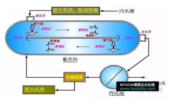 特點是:混合液在溝內(nèi)不斷地循環(huán)流動,形成厭氧、缺氧和好氧段。