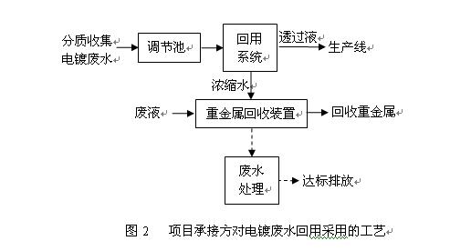 經(jīng)過多年電鍍廢水及涉重金屬的研究及工程實(shí)踐,摸索出一套成熟穩(wěn)定的電鍍廢水回用技術(shù)(連續(xù)錯(cuò)流抗污染多級膜法回用),把電鍍廢水分質(zhì)收集,單獨(dú)膜法回用,回用水可分別用到對應(yīng)的生產(chǎn)線或作為自來水使用;目前項(xiàng)目承接方采用的回用理念是“先回用后處理”,把廢水先進(jìn)行分質(zhì)收集,單獨(dú)膜法回用,回收率≥85%,濃縮后的廢水中重金屬離子濃度可提升到100倍以上,對該濃縮廢水可通過重金屬回收裝置(專利號:CN201010578758.5)進(jìn)行重金屬的提取,大大提高了重金屬的回收效率,回收重金屬的同時(shí),也減輕后需廢水處理的負(fù)荷。