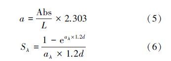 式中,Abs表示在每個(gè)波長(zhǎng)下的吸光度值,L和d均表示輻射光源的路徑長(zhǎng)度,取值均為0.01 m.