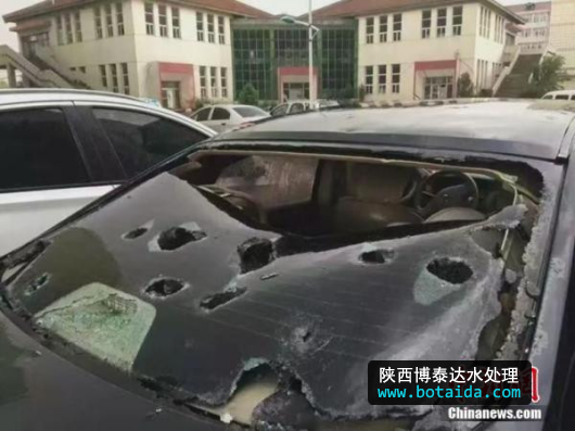 2016年6月13日,雞蛋大的冰雹襲擊山西長治,多輛汽車玻璃被砸碎。 中新網 圖