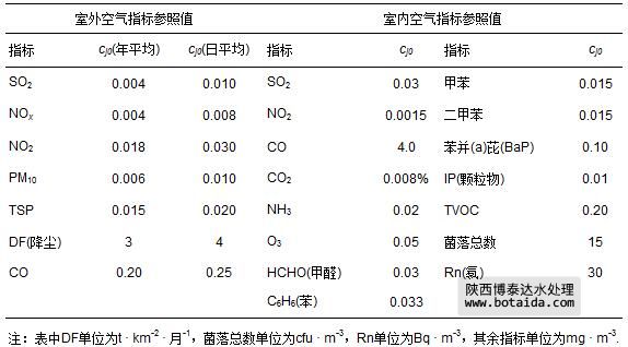式中,x′j 為室內(nèi)、外空氣指標(biāo)j的規(guī)范值.
