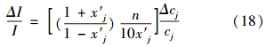 分別表示引力指數(shù)的相對誤差和指標(biāo)測值的相對誤差.式(19)可寫為: