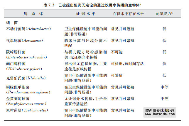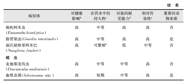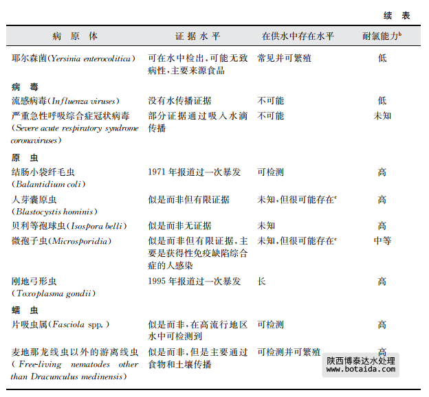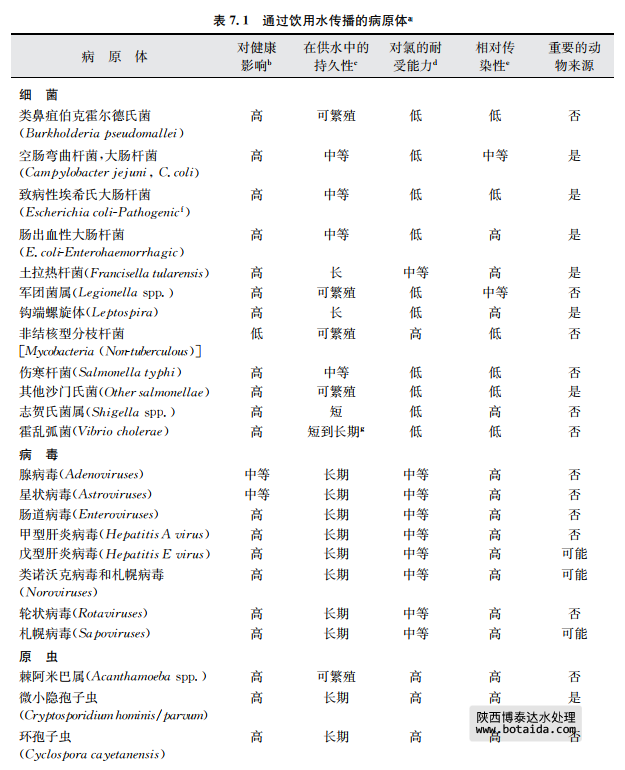 a該表中的病原體在飲用水供應(yīng)中的發(fā)生與公眾衛(wèi)生密切相關(guān)這一事實(shí)已經(jīng)被證實(shí)。更多關(guān)于本表中病原體和其 他病原體信息見第11章內(nèi)容。