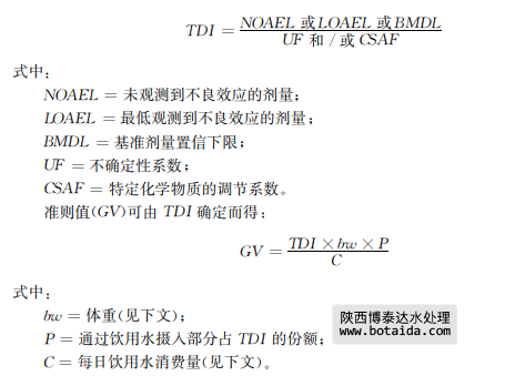 多年來,聯(lián)合國糧農(nóng)組織(FAO)/世界衛(wèi)生組織(WHO)的食品添加劑聯(lián)合專家委員會 (JECFA)和聯(lián)合國糧農(nóng)組織/世界衛(wèi)生組織農(nóng)藥殘留聯(lián)席會議(JMPR)已經(jīng)就確定ADIs制 訂了一些原則(FAO/WHO,2009),這些原則已被采納,在適當?shù)那闆r下,可以用來制定飲 用水水質(zhì)的準則值。