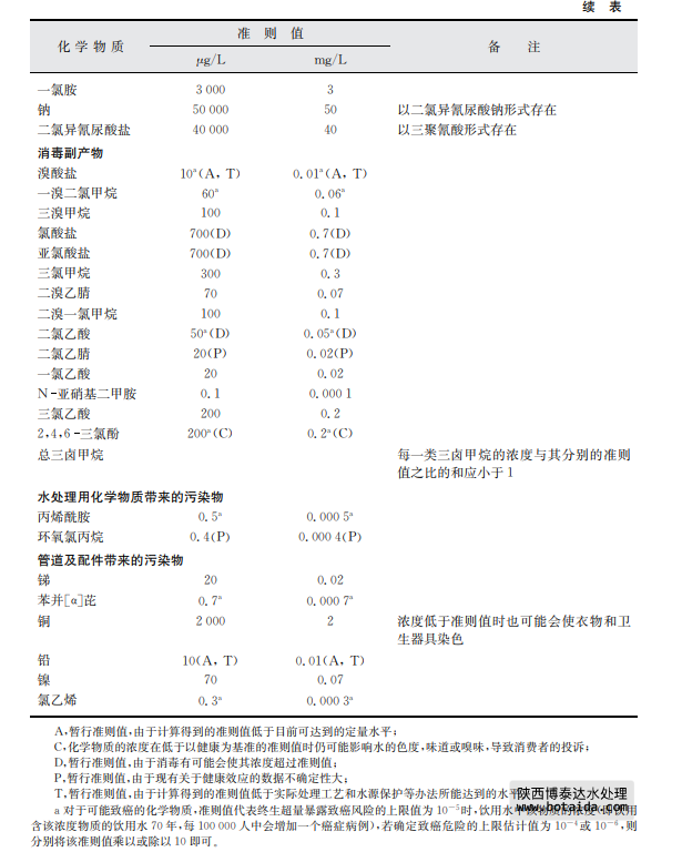 其他化學(xué)物質(zhì),如來(lái)自管道或銅質(zhì)龍頭的鉛或銅,以及從涂層溶出的化學(xué)物,可能是在 處理或輸配水過(guò)程中因水與其表面接觸而進(jìn)入水中(間接添加物)。 飲用水處理中使用的一些化學(xué)物質(zhì)(如鋁)或可能與水接觸的一些化學(xué)材料(如苯乙烯) 也許會(huì)從其他主要來(lái)源進(jìn)入水中,這些已在本章其他章節(jié)具體討論。