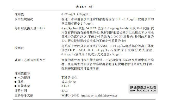根據(jù)最近的研究,有關(guān)銻毒性的資料明顯增多,盡管其中很多是經(jīng)腹腔內(nèi)途徑染毒。飲 用水中銻的形式是決定毒性的關(guān)鍵因素,含銻材料中釋放出來的銻以毒性較弱的銻(V)的 含氧陰離子形式出現(xiàn)。最易溶于水的酒石酸鉀銻比三氧化銻亞慢性毒性要高。由于三氧化 銻的生物利用度很低,只在某些體外試驗(yàn)中,而不是體內(nèi)試驗(yàn)中發(fā)現(xiàn)遺傳毒性。然而可溶性 的銻(III)鹽在體外和體內(nèi)試驗(yàn)中均發(fā)現(xiàn)遺傳毒性作用。動(dòng)物試驗(yàn)未獲得可溶或不可溶性銻 化合物潛在致癌作用上的定量資料。IARC依據(jù)大鼠吸入染毒試驗(yàn)認(rèn)為三氧化銻屬于2B 組(對(duì)人類是可能(possible)致癌物),但三硫化銻屬于對(duì)人類無明顯致癌效應(yīng)的化合物(列 為第3組)。不過,酒石酸鉀銻長期經(jīng)口染毒時(shí),不增加致癌危險(xiǎn)性。由于銻經(jīng)吸入攝入僅 對(duì)肺具有致癌性,而對(duì)其他組織無明顯作用。長期吸入過量的不溶性顆粒物,直接導(dǎo)致肺損 傷。盡管存在某些吸入銻化合物而致癌的證據(jù),但沒有資料表明經(jīng)口途徑攝入具有致癌 作用。