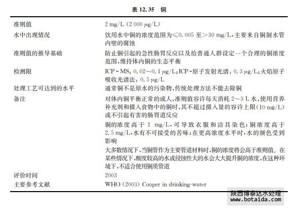 ?。桑校茫酉嚓P研究資料表明成人經口攝入的銅濃度可接受范圍的上限是不確定的,但是 成人攝入量通常范圍是數(shù)毫克每天(每天大于2或3mg),而不是更多的量。銅不良效應 的評估僅依據(jù)攝入含銅污染的水后腸胃道所起的不良效應。目前有關研究的毒理學資料 建立在實驗動物的基礎上,不能適用于人類的情況,不能用于確定銅濃度可接受范圍的上 限,但有助于確定不良反應的作用方式。由于觀察到的腸胃道反應受到消化道內濃度較 高(比24h的攝入量還要高)銅干擾,銅導致腸胃道反應的研究結果必須謹慎使用。近 期的研究描述了引起腸胃道反應的飲用水中銅的閾值,但仍存在銅對敏感人群長期效 應的不確定性,例如,具有 Wilson?。ǜ味範詈俗冃裕┗蚝推渌w內銅平衡代謝障礙 的人群。