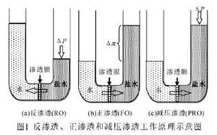 正滲透膜技術(shù)屬于膜分離過程。水從高水化學(xué)勢區(qū)通過選擇性滲透膜向低水化學(xué)勢區(qū)進(jìn)行轉(zhuǎn)移。選擇性滲透膜分隔的高水化學(xué)勢區(qū)和低水化學(xué)勢區(qū)所存在的滲透壓差是正滲透過程的驅(qū)動力。正滲透技術(shù)具有低能耗、較高的水通量和回收率、不易結(jié)垢和可處理高濃鹽水等優(yōu)點(diǎn)。