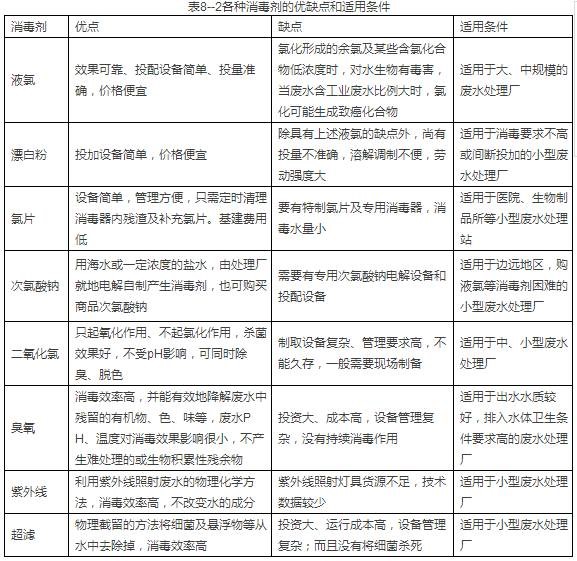 各種消毒劑的優(yōu)缺點(diǎn)和適用條件見(jiàn)表8--2。參考此表,可以初步確定應(yīng)該使用的消毒劑。
